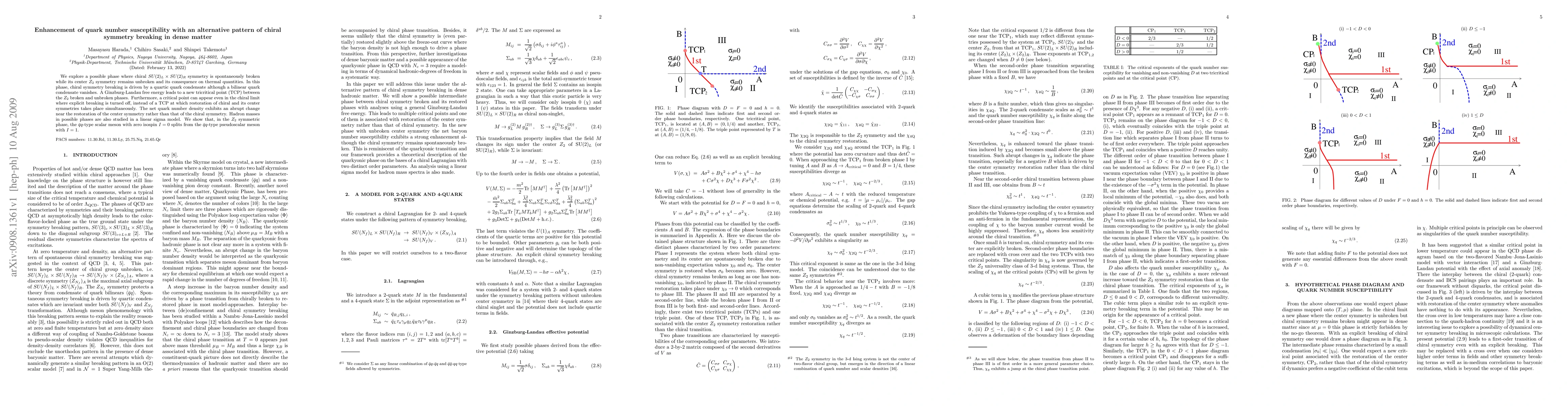 We explore a possible phase where chiral $SU(2)_L \times SU(2)_R$ symmetry is spontaneously broken while its center $Z_2$ symmetry remains unbroken and its consequence on thermal quantities. In this phase, chiral symmetry breaking is driven by a quartic quark condensate although a bilinear quark condensate vanishes. A Ginzburg-Landau free energy leads to a new tricritical point (TCP) between the $Z_2$ broken and unbroken phases. Furthermore, a critical point can appear even in the chiral limit where explicit breaking is turned off, instead of a TCP at which restoration of chiral and its center symmetries takes place simultaneously. The net quark number density exhibits an abrupt change near the restoration of the center symmetry rather than that of the chiral symmetry. Hadron masses in possible phases are also studied in a linear sigma model. We show that, in the $Z_2$ symmetric phase, the $\bar{q}q$-type scalar meson with zero isospin I=0 splits from the $\bar{q}q$-type pseudoscalar meson with I=1.