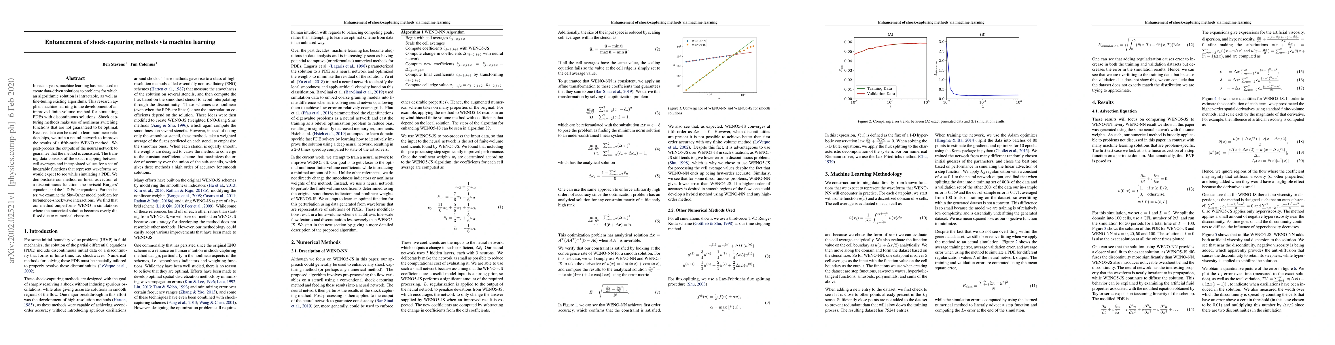 This research uses machine learning to improve a finite-volume method for simulating partial differential equations with discontinuous solutions, outperforming a fifth-order WENO method in cases of numerical diffusion.