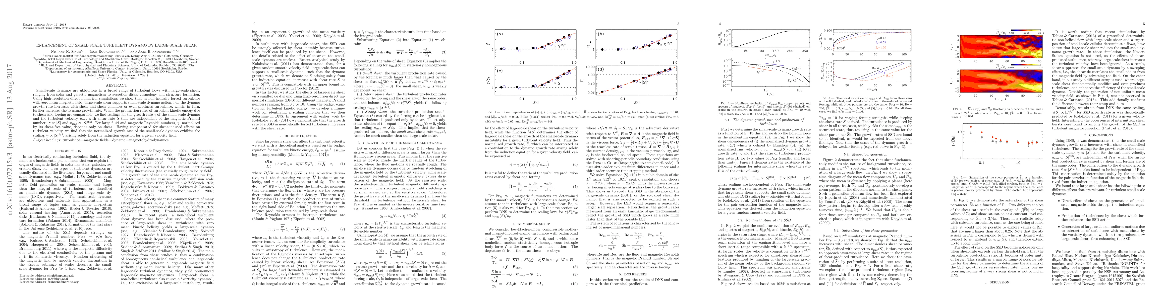 This paper demonstrates that large-scale shear enhances small-scale dynamo action in turbulent flows, leading to increased dynamo growth rates. High-resolution simulations reveal that shear not only boosts the dynamo but also generates turbulence, further amplifying the dynamo effect, with scalings independent of the magnetic Prandtl number.