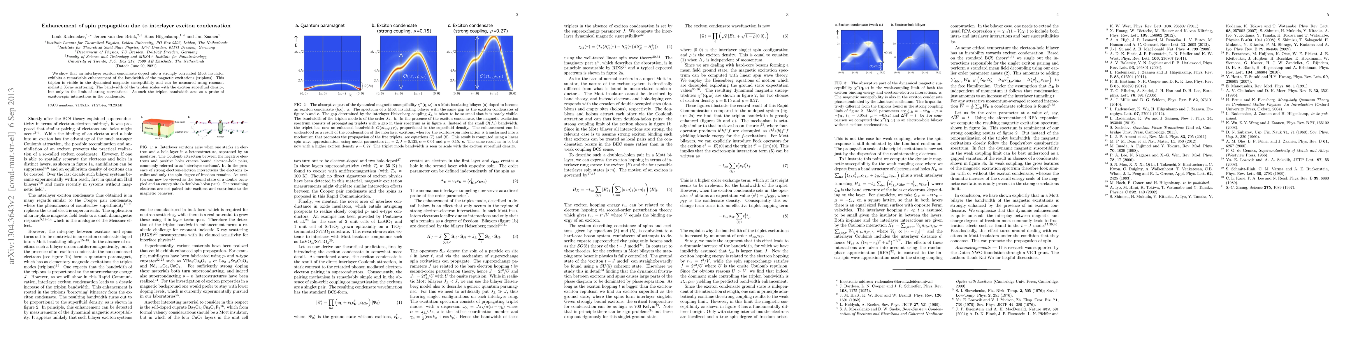 We show that an interlayer exciton condensate doped into a strongly correlated Mott insulator exhibits a remarkable enhancement of the bandwidth of the magnetic excitations (triplons). This triplon is visible in the dynamical magnetic susceptibility and can be measured using resonant inelastic X-ray scattering. The bandwidth of the triplon scales with the exciton superfluid density, but only in the limit of strong correlations. As such the triplon bandwidth acts as a probe of exciton-spin interactions in the condensate.