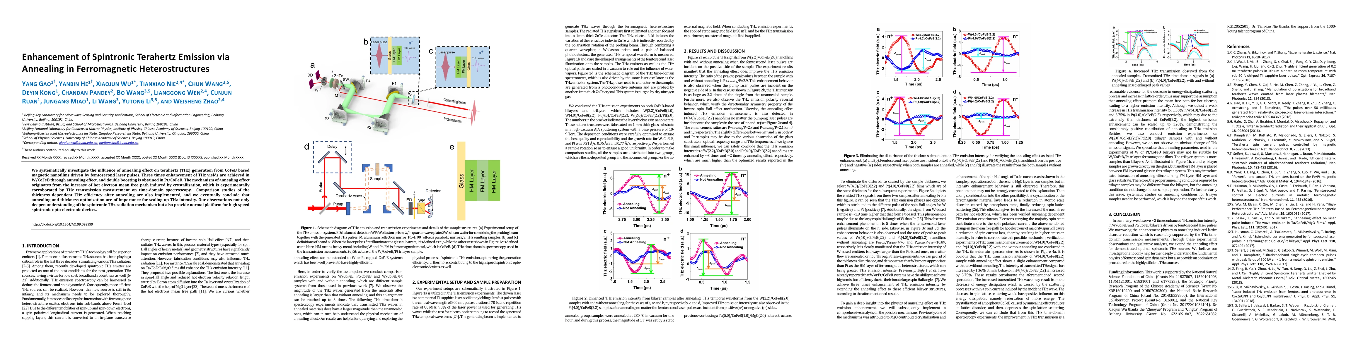 This study investigates the impact of annealing on terahertz emission from CoFeB-based magnetic nanofilms, achieving a threefold enhancement in W/CoFeB and double in Pt/CoFeB due to increased hot electron mean free path from crystallization. The findings suggest that annealing and thickness optimization are crucial for enhancing terahertz intensity in spintronic devices.