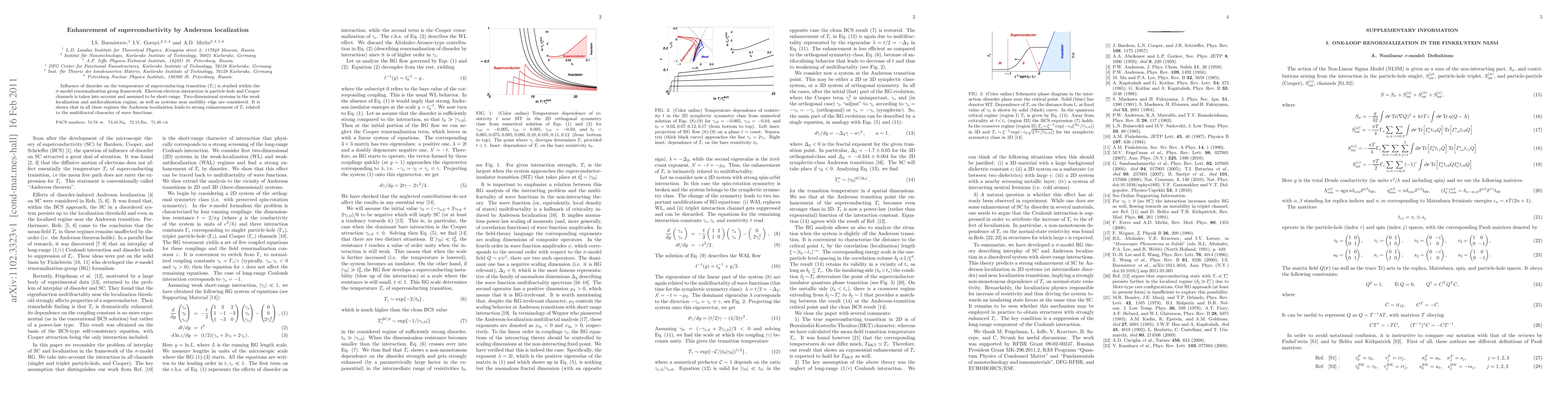 The paper presents a comprehensive renormalization group analysis of the influence of disorder on superconductivity, deriving one-loop equations for the renormalization of interaction coupling constants and demonstrating the enhancement of T_c due to Anderson localization and multifractality in disordered systems.