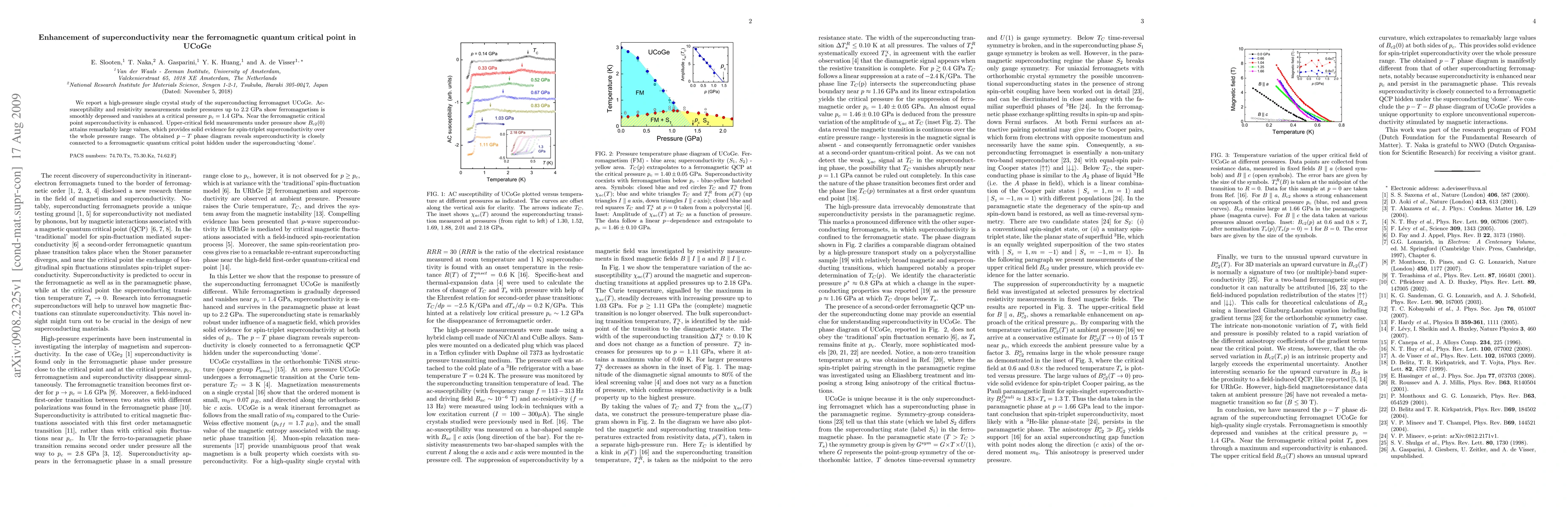 This study demonstrates that superconductivity in UCoGe is significantly enhanced near its ferromagnetic quantum critical point under high pressure. The transition to superconductivity correlates with the disappearance of ferromagnetism, and evidence for spin-triplet superconductivity is provided by the large upper-critical field values observed.