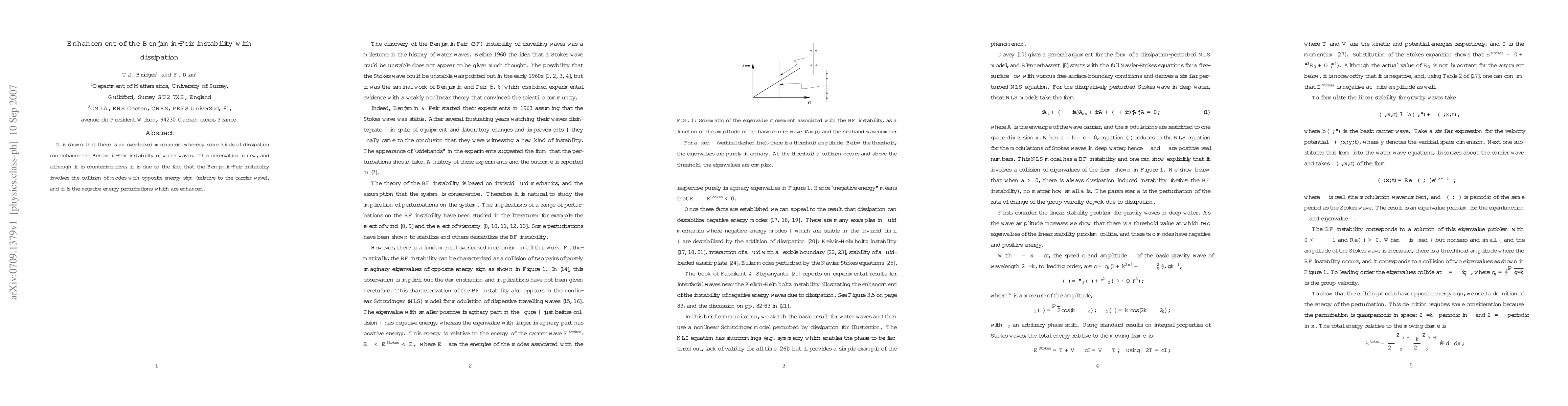 The paper introduces a new perspective on the role of dissipation in wave instabilities, showing that specific forms of damping can enhance the Benjamin-Feir instability by destabilizing negative energy modes.