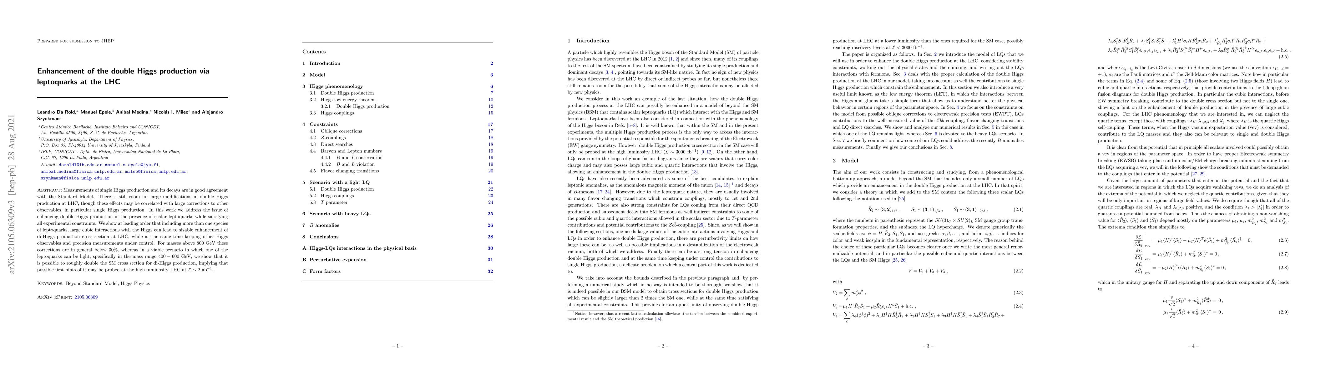 Measurements of single Higgs production and its decays are in good agreement with the Standard Model. There is still room for large modifications in double Higgs production at LHC, though these effects may be correlated with large corrections to other observables, in particular single Higgs production. In this work we address the issue of enhancing double Higgs production in the presence of scalar leptoquarks while satisfying all experimental constraints. We show at leading order that including more than one species of leptoquarks, large cubic interactions with the Higgs can lead to sizable enhancement of di-Higgs production cross section at LHC, while at the same time keeping other Higgs observables and precision measurements under control. For masses above 800 GeV these corrections are in general below 30%, whereas in a viable scenario in which one of the leptoquarks can be light, specifically in the mass range $400-600$ GeV, we show that it is possible to roughly double the SM cross section for di-Higgs production, implying that possible first hints of it may be probed at the high luminosity LHC at $\mathcal{L}\sim 2$ ab$^{-1}$.