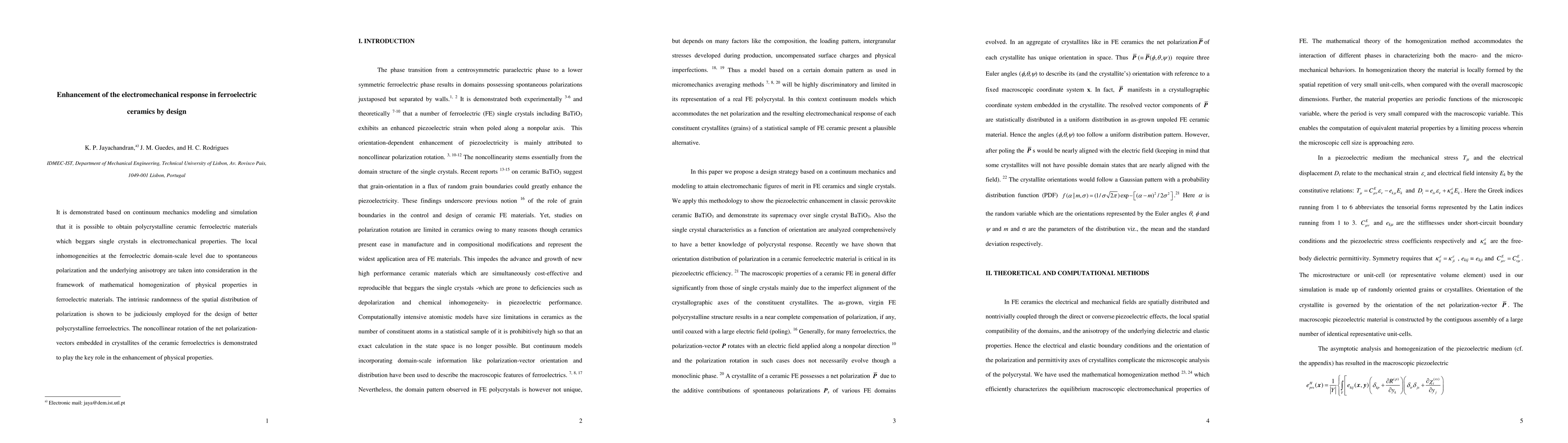 This research demonstrates that continuum mechanics modeling can design polycrystalline ferroelectric ceramics with superior electromechanical properties compared to single crystals. The study employs mathematical homogenization to account for domain-scale inhomogeneities and shows that the intrinsic randomness of polarization distribution, along with noncollinear rotation of polarization vectors, enhances material performance.