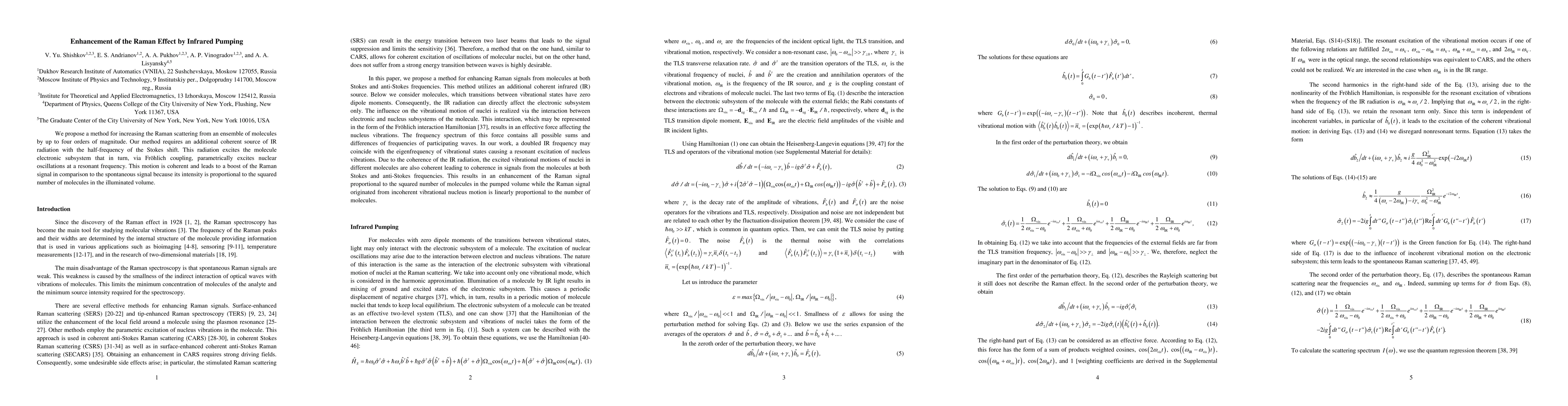 Researchers propose a method to boost Raman scattering by up to four orders of magnitude through infrared pumping, increasing the signal intensity due to coherent nuclear oscillations.