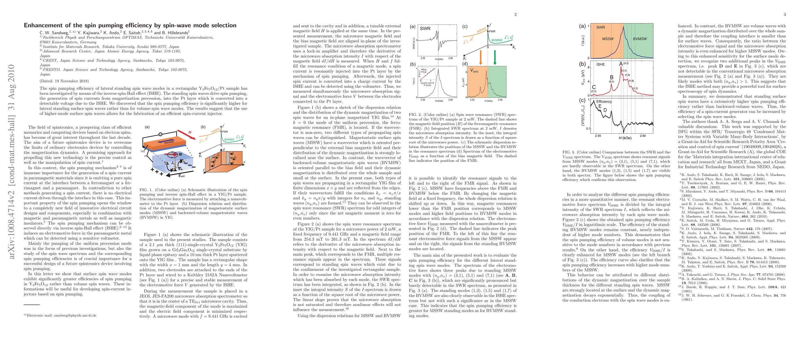Researchers found that using lateral standing surface spin waves significantly increases spin pumping efficiency in a YIG/Pt sample, enabling the fabrication of efficient spin-current injectors.