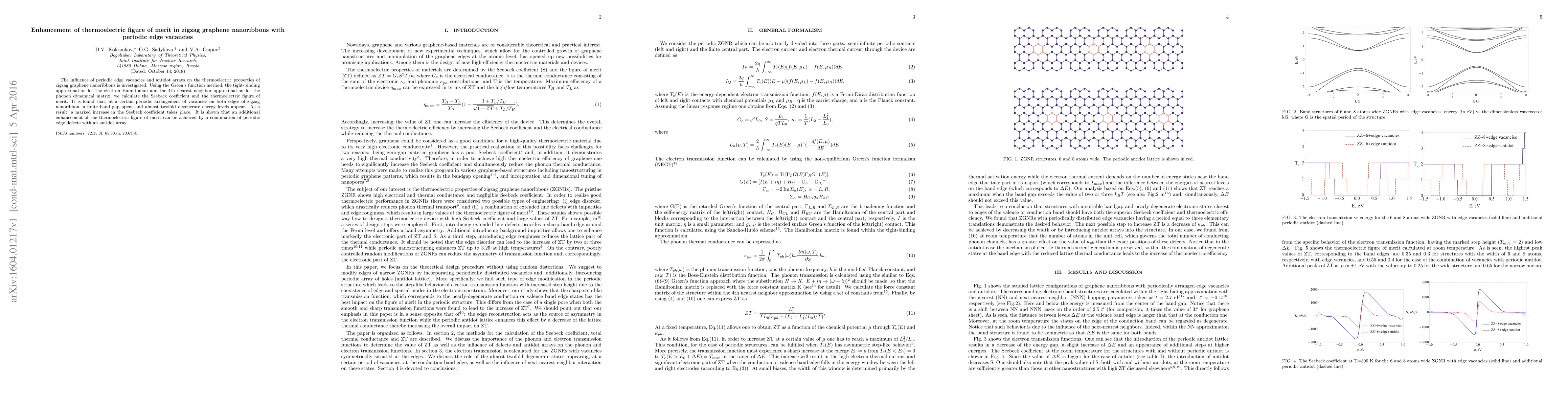 This study investigates how periodic edge vacancies and antidot arrays in zigzag graphene nanoribbons enhance thermoelectric properties. The research finds that a specific arrangement of edge vacancies opens a finite band gap and introduces degenerate energy levels, significantly boosting the Seebeck coefficient. Combining edge vacancies with an antidot array further enhances the thermoelectric figure of merit.