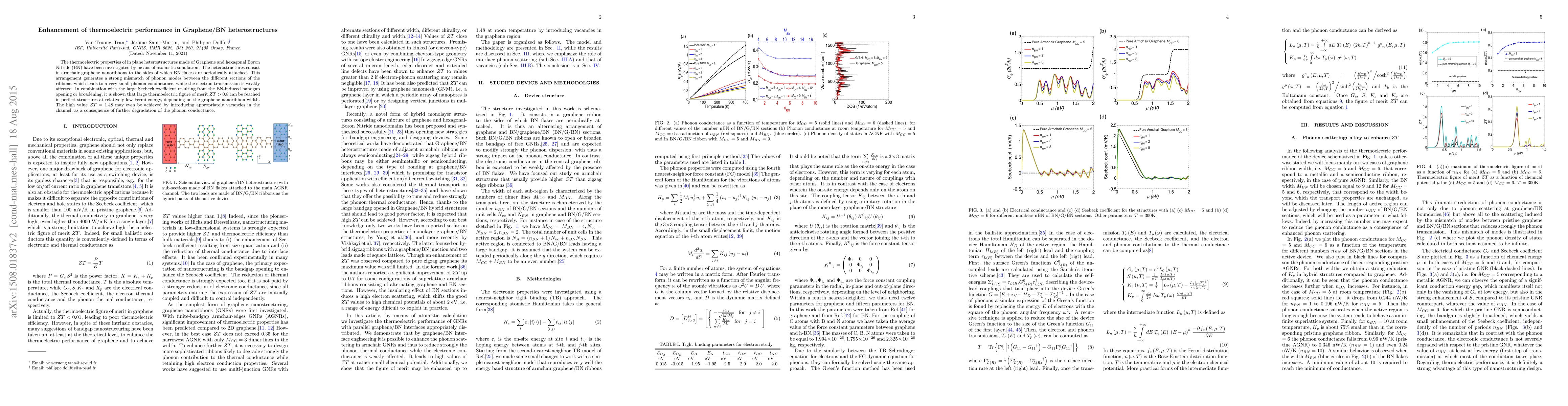 This paper investigates the thermoelectric performance of graphene/BN heterostructures using atomistic simulations. The heterostructures exhibit low phonon conductance and high Seebeck coefficient, leading to a thermoelectric figure of merit (ZT) exceeding 0.8, with an optimal ZT of 1.48 achievable through vacancy engineering.
