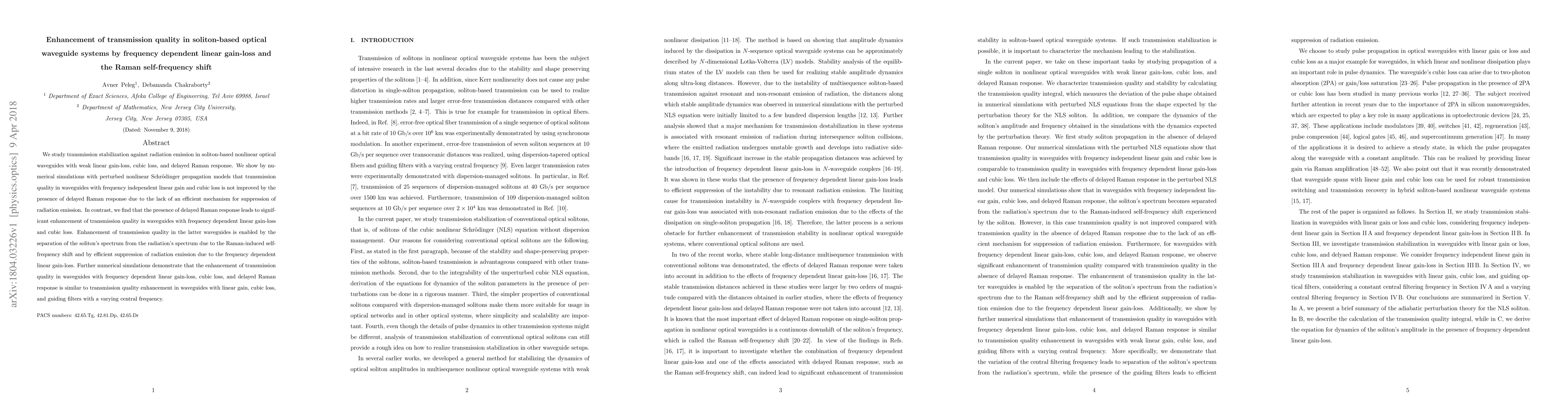 This paper investigates how transmission quality in soliton-based optical waveguides can be enhanced by incorporating frequency dependent linear gain-loss and Raman self-frequency shift. It finds that while these factors do not improve transmission in systems with frequency-independent gain and loss, they significantly enhance quality in systems with frequency-dependent gain-loss due to effective radiation emission suppression and soliton spectrum separation.