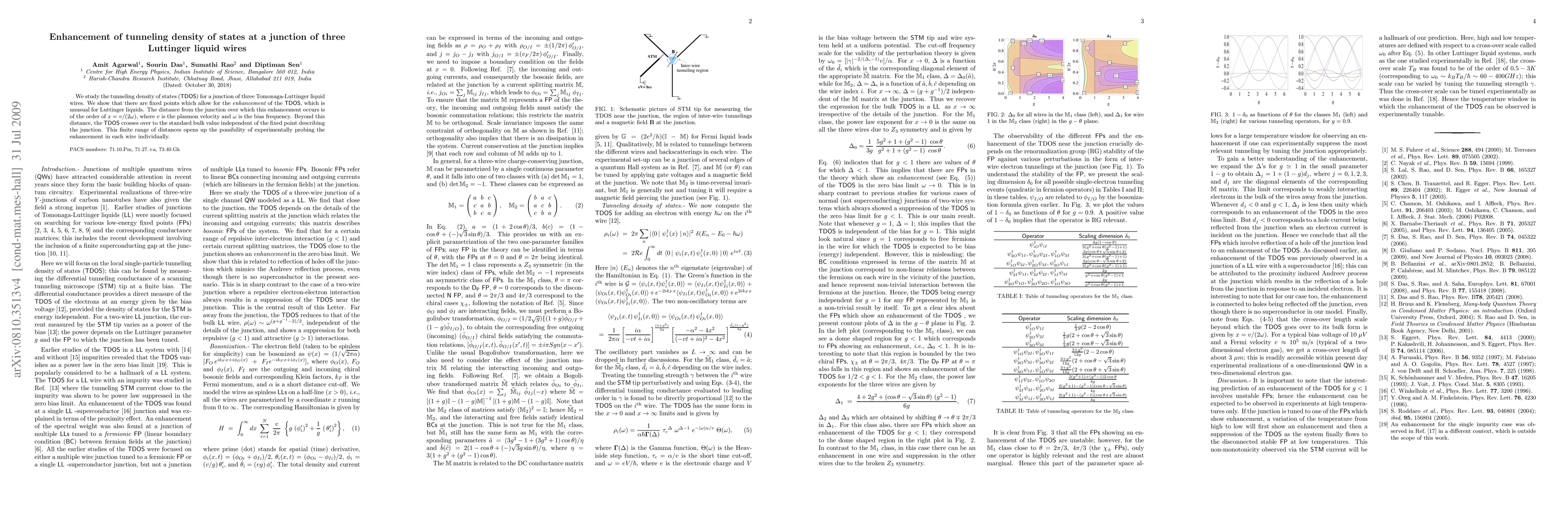 This paper investigates the tunneling density of states (TDOS) at a junction of three Luttinger liquid wires, revealing fixed points that enhance the TDOS, a phenomenon atypical for Luttinger liquids. The enhancement occurs over a distance of x = v/(2ω), beyond which the TDOS reverts to the standard bulk value, offering a potential method for individual wire probing.