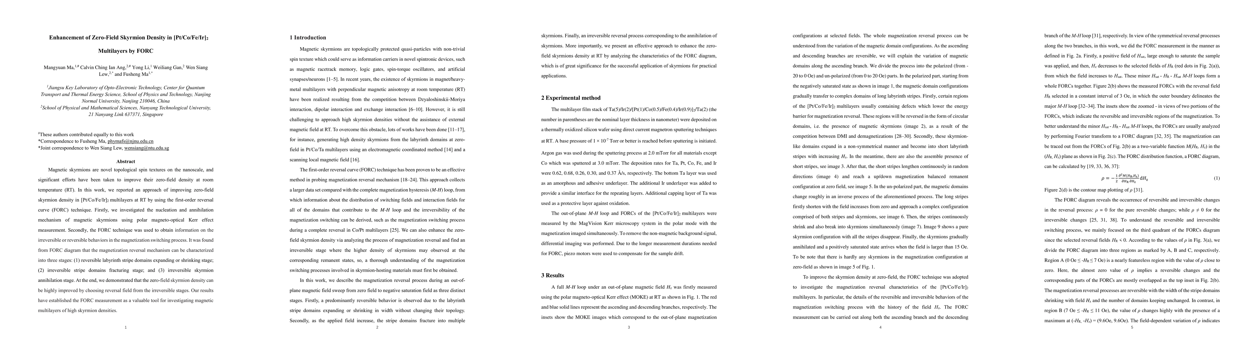 This study enhances zero-field skyrmion density in [Pt/Co/Fe/Ir]2 multilayers at room temperature using the FORC technique, revealing three stages in magnetization reversal: reversible labyrinth domains, irreversible domain fracturing, and irreversible skyrmion annihilation. Optimal reversal fields from irreversible stages significantly improve skyrmion density.