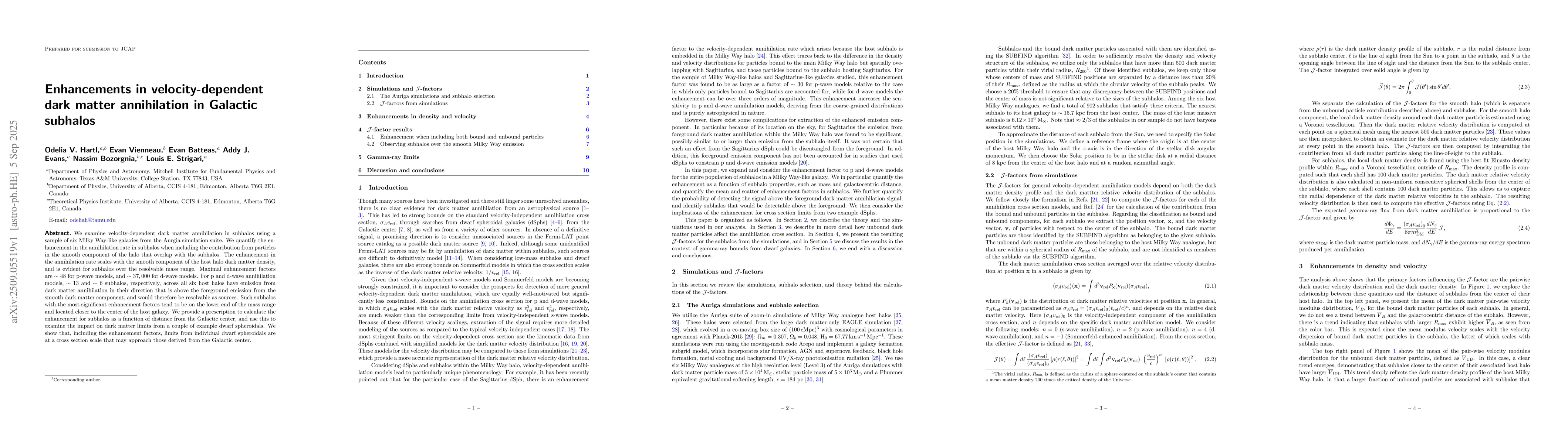 We examine velocity-dependent dark matter annihilation in subhalos using a sample of six Milky Way-like galaxies from the Aurgia simulation suite. We quantify the enhancement in the annihilation rate in subhalos when including the contribution from particles in the smooth component of the halo that overlap with the subhalos. The enhancement in the annihilation rate scales with the smooth component of the host halo dark matter density, and is evident for subhalos over the resolvable mass range. Maximal enhancement factors are ~ 48 for p-wave models, and ~ 37,000 for d-wave models. For p and d-wave annihilation models, ~ 13 and ~ 6 subhalos, respectively, across all six host halos have emission from dark matter annihilation in their direction that is above the foreground emission from the smooth dark matter component, and would therefore be resolvable as sources. Such subhalos with the most significant enhancement factors tend to be on the lower end of the mass range and located closer to the center of the host galaxy. We provide a prescription to calculate the enhancement for subhalos as a function of distance from the Galactic center, and use this to examine the impact on dark matter limits from a couple of example dwarf spheroidals. We show that, including the enhancement factors, limits from individual dwarf spheroidals are at a cross section scale that may approach those derived from the Galactic center.