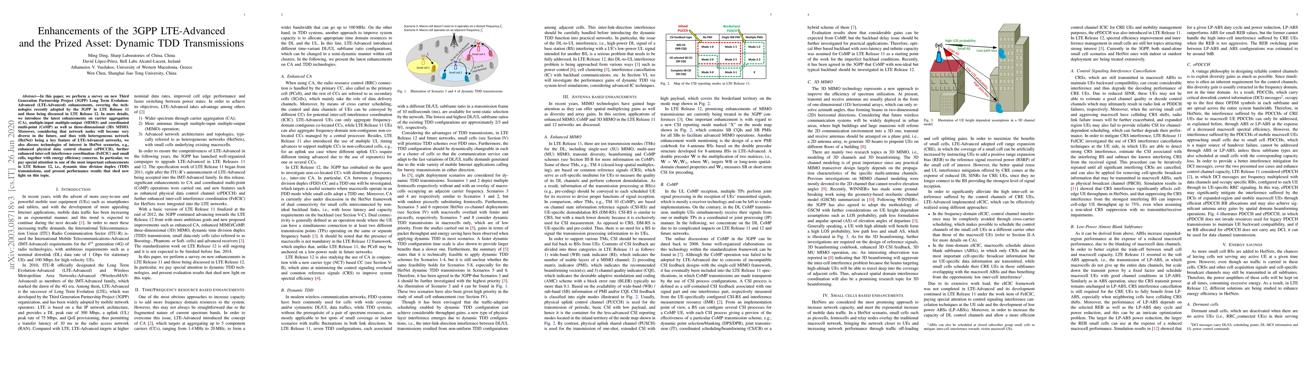 This paper surveys enhancements in 3GPP LTE-Advanced, focusing on carrier aggregation, MIMO, CoMP, and dynamic TDD transmissions in Release 11 and 12, alongside technologies for heterogeneous networks and energy efficiency. Special emphasis is placed on the performance of dynamic TDD.
