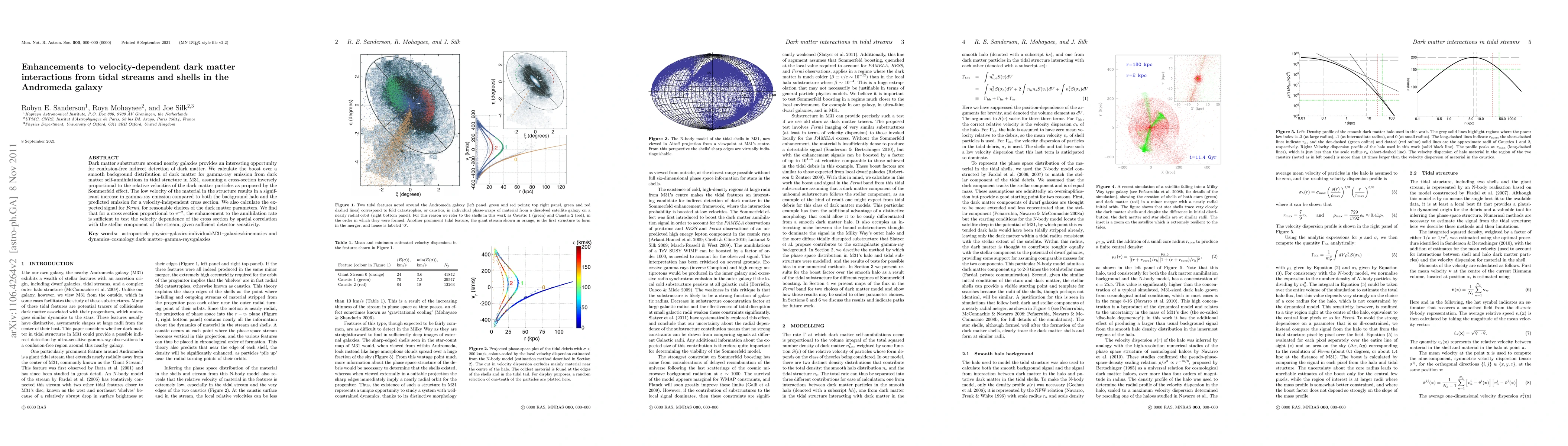 Dark matter substructure around nearby galaxies provides an interesting opportunity for confusion-free indirect detection of dark matter. We calculate the boost over a smooth background distribution of dark matter for gamma-ray emission from dark matter self-annihilations in tidal structure in M31, assuming a cross-section inversely proportional to the relative velocities of the dark matter particles as proposed by the Sommerfeld effect. The low velocity of the material in the structure results in a significant increase in gamma-ray emission compared to both the background halo and the predicted emission for a velocity-independent cross section. We also calculate the expected signal for Fermi, for reasonable choices of the dark matter parameters. We find that for a cross section proportional to the inverse-square of the relative velocity, the enhancement to the annihilation rate is sufficient to test the velocity dependence of the cross section by spatial correlation with the stellar component of the stream, given sufficient detector sensitivity.