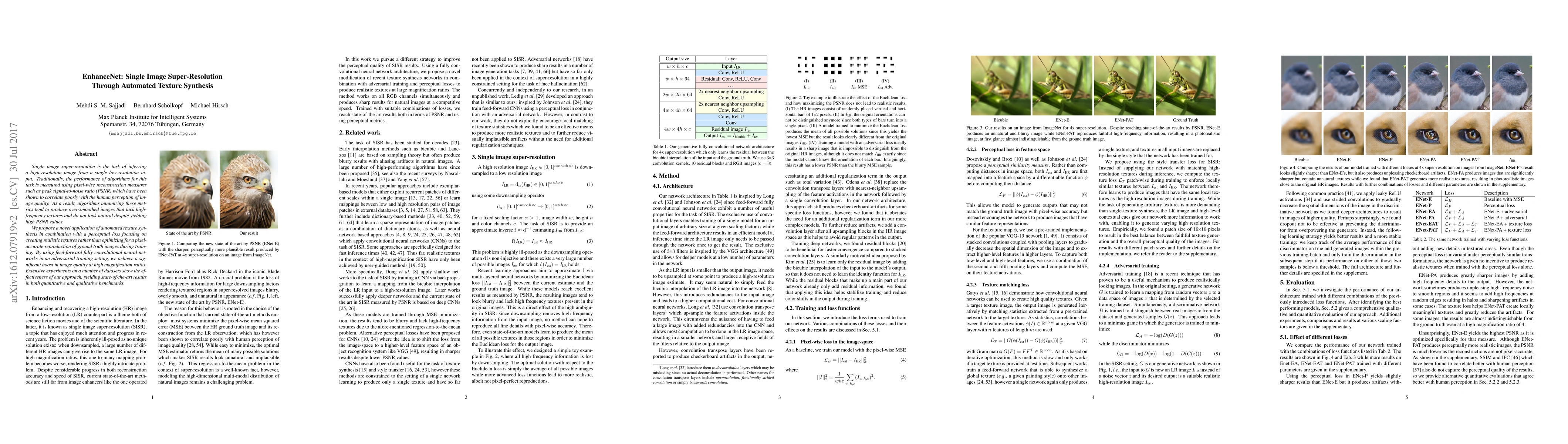 Single image super-resolution is the task of inferring a high-resolution image from a single low-resolution input. Traditionally, the performance of algorithms for this task is measured using pixel-wise reconstruction measures such as peak signal-to-noise ratio (PSNR) which have been shown to correlate poorly with the human perception of image quality. As a result, algorithms minimizing these metrics tend to produce over-smoothed images that lack high-frequency textures and do not look natural despite yielding high PSNR values. We propose a novel application of automated texture synthesis in combination with a perceptual loss focusing on creating realistic textures rather than optimizing for a pixel-accurate reproduction of ground truth images during training. By using feed-forward fully convolutional neural networks in an adversarial training setting, we achieve a significant boost in image quality at high magnification ratios. Extensive experiments on a number of datasets show the effectiveness of our approach, yielding state-of-the-art results in both quantitative and qualitative benchmarks.
