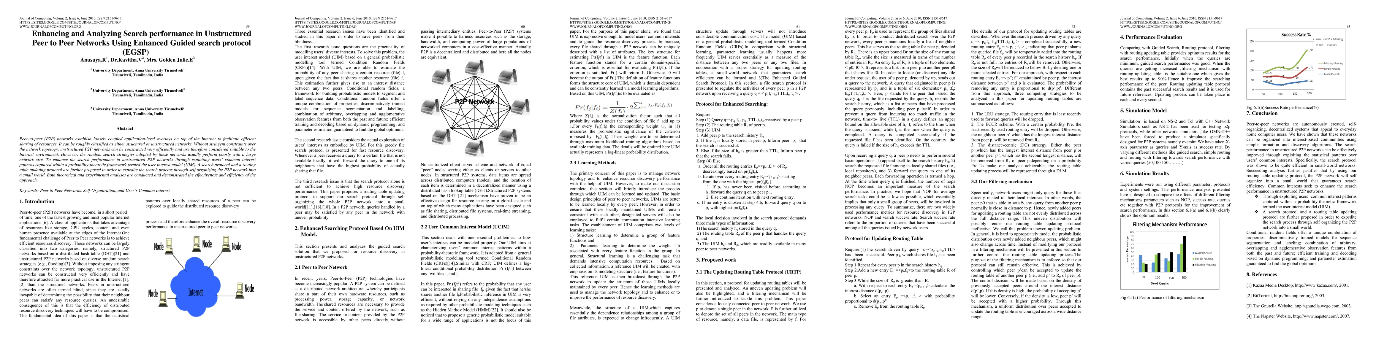 This paper proposes an Enhanced Guided Search Protocol (EGSP) to improve search performance in unstructured peer-to-peer networks by leveraging users' common interest patterns. The approach includes a search protocol and a routing table updating protocol to organize the network into a small world, demonstrated to be effective through both theoretical and experimental analyses.