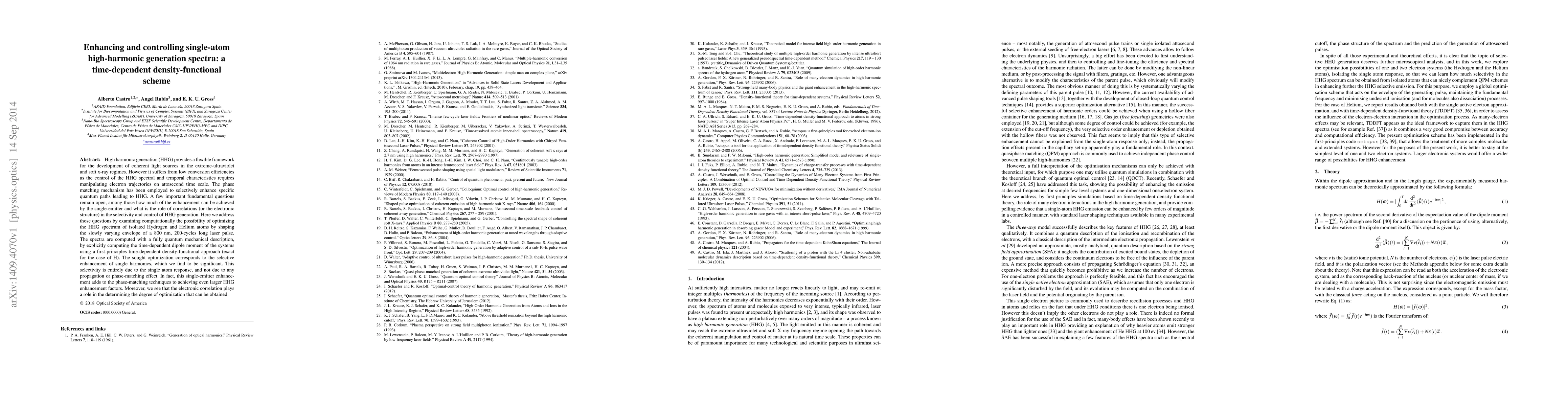 Researchers optimized high harmonic generation spectra of isolated Hydrogen and Helium atoms using a 800 nm laser pulse, achieving significant selectivity and enhancement due to single atom response.