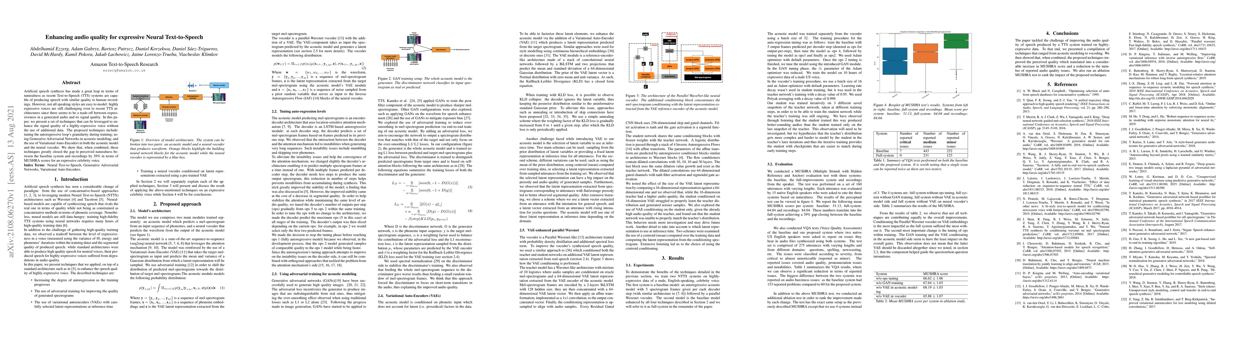 This work introduces a novel approach for natural TTS synthesis, combining techniques from generative adversarial networks and autoencoding variational bayes.