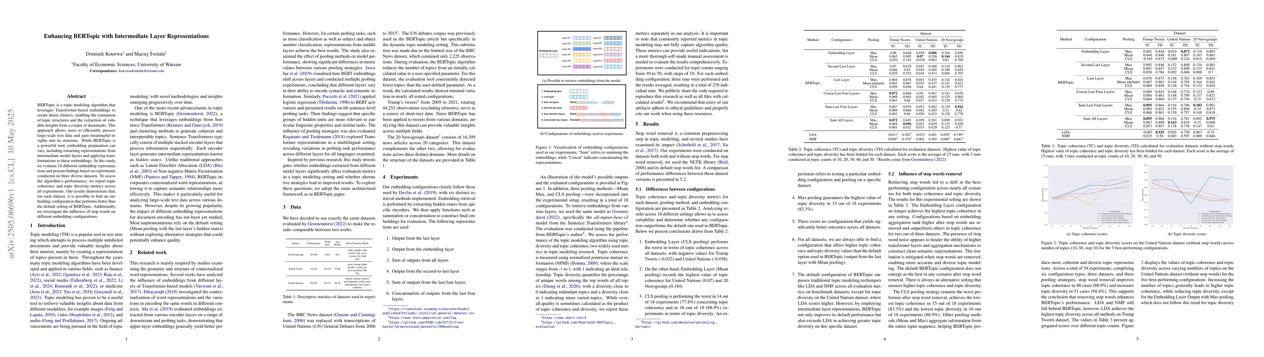 The paper presents an evaluation of 18 embedding representations for BERTopic, demonstrating improved performance through optimized configurations.