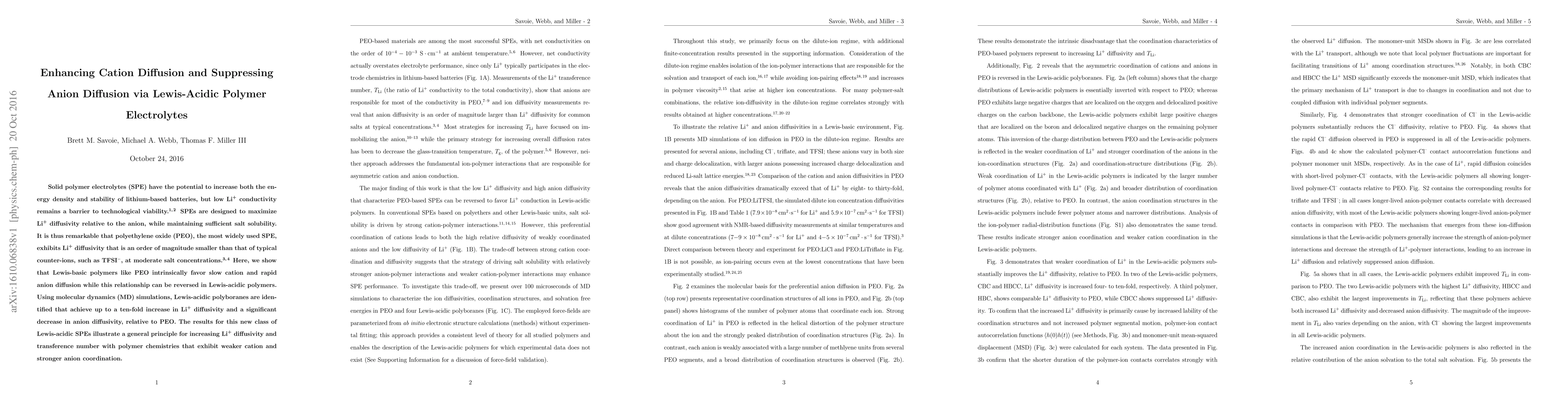 This paper demonstrates that Lewis-acidic polymer electrolytes can significantly enhance lithium-ion diffusion while suppressing anion diffusion, addressing the low conductivity issue in solid polymer electrolytes. Molecular dynamics simulations reveal that Lewis-acidic polyboranes achieve a ten-fold increase in Li-ion diffusivity compared to conventional polyethylene oxide, offering a new approach to improve battery performance.