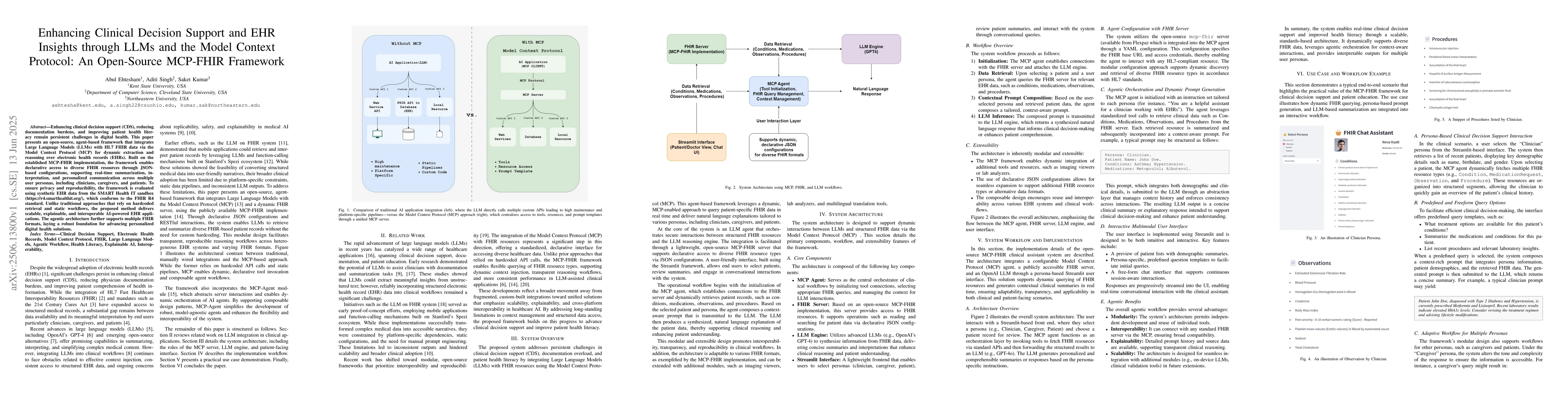 Enhancing clinical decision support (CDS), reducing documentation burdens, and improving patient health literacy remain persistent challenges in digital health. This paper presents an open-source, agent-based framework that integrates Large Language Models (LLMs) with HL7 FHIR data via the Model Context Protocol (MCP) for dynamic extraction and reasoning over electronic health records (EHRs). Built on the established MCP-FHIR implementation, the framework enables declarative access to diverse FHIR resources through JSON-based configurations, supporting real-time summarization, interpretation, and personalized communication across multiple user personas, including clinicians, caregivers, and patients. To ensure privacy and reproducibility, the framework is evaluated using synthetic EHR data from the SMART Health IT sandbox (https://r4.smarthealthit.org/), which conforms to the FHIR R4 standard. Unlike traditional approaches that rely on hardcoded retrieval and static workflows, the proposed method delivers scalable, explainable, and interoperable AI-powered EHR applications. The agentic architecture further supports multiple FHIR formats, laying a robust foundation for advancing personalized digital health solutions.