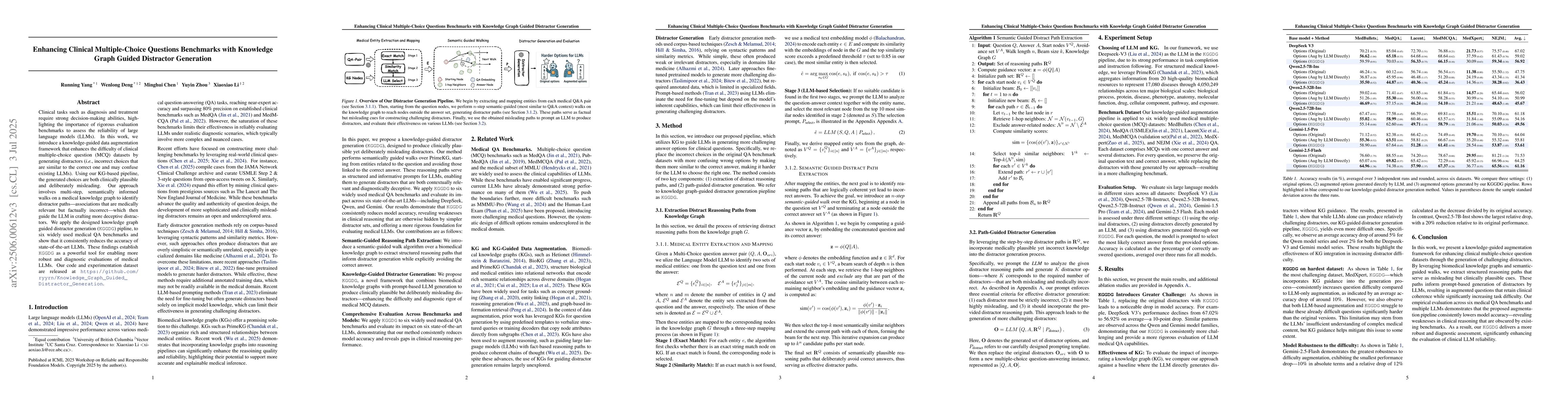 The paper presents a knowledge-guided augmentation framework for enhancing clinical MCQ datasets through the generation of challenging distractors using a medical knowledge graph and semantic-guided walks.
