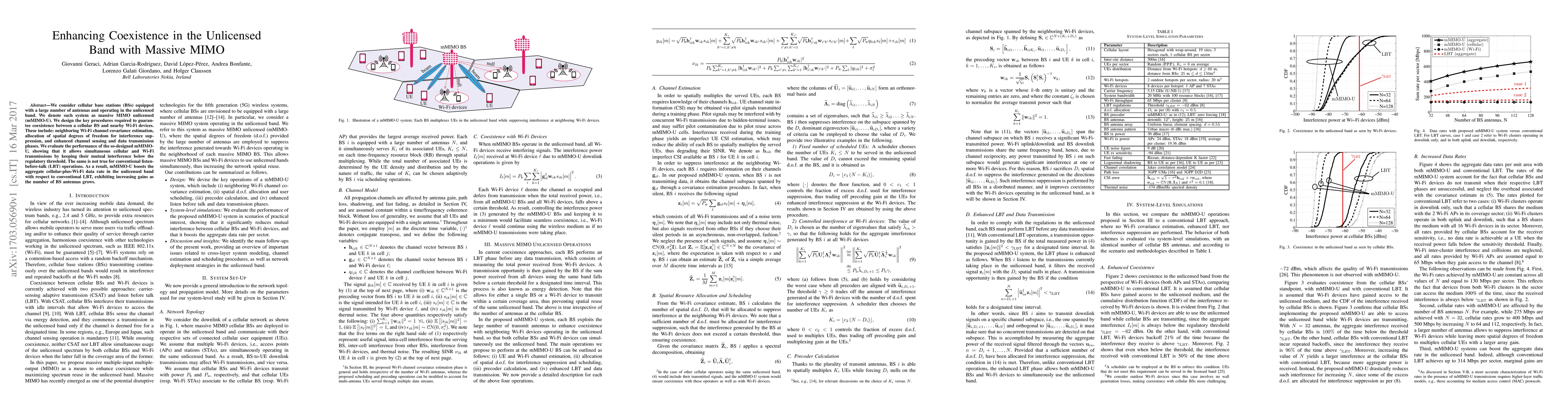 This paper proposes a massive MIMO system operating in the unlicensed band to enhance coexistence with Wi-Fi devices through advanced channel estimation, spatial interference suppression, and improved channel sensing. It demonstrates superior performance over conventional listen-before-talk methods, significantly boosting aggregate data rates.