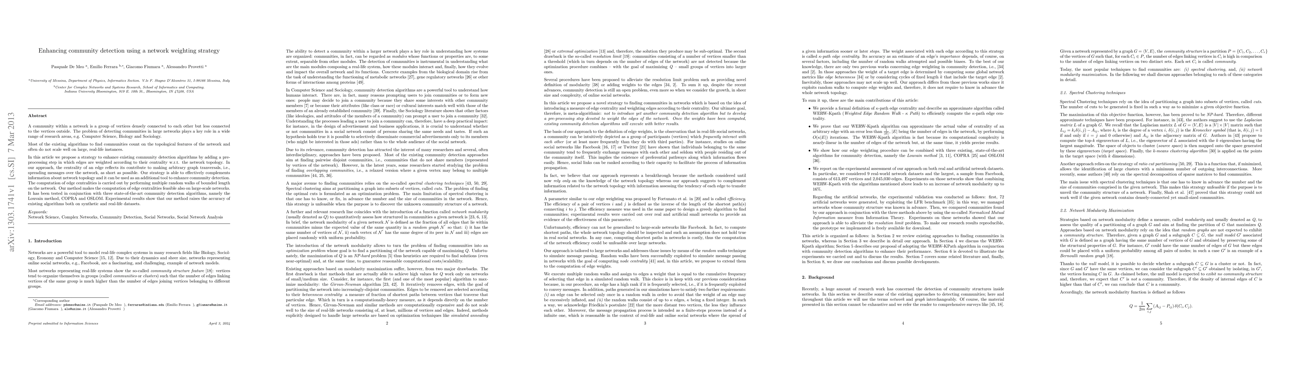 This paper proposes a network weighting strategy to enhance community detection algorithms by weighting edges based on their centrality, which reflects their role in facilitating graph traversals. The method, tested with Louvain, COPRA, and OSLOM, improves the accuracy of community detection on both synthetic and real-life datasets.