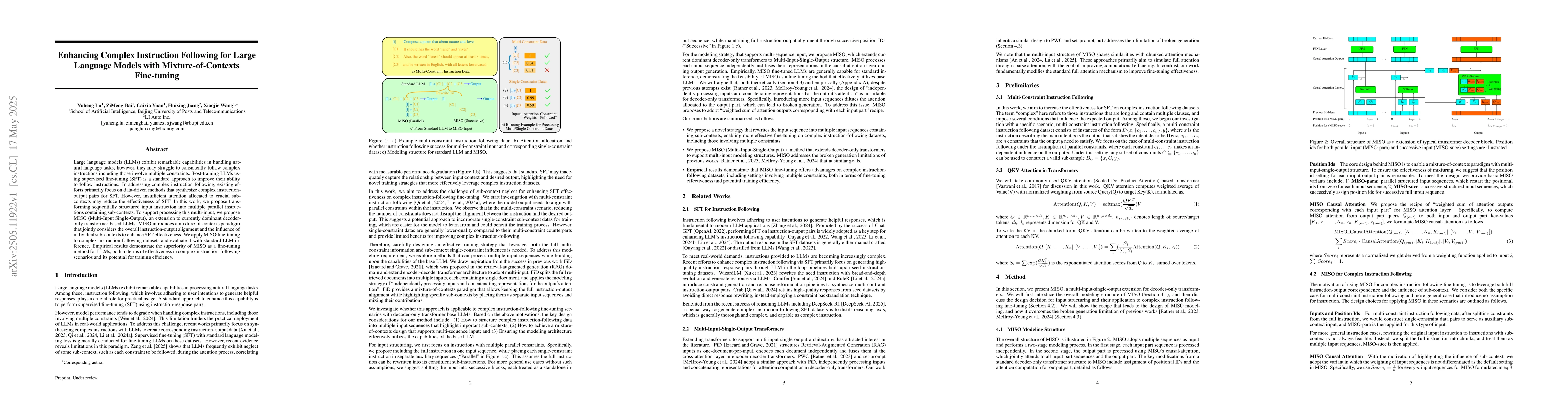 This paper proposes a new method called MISO to improve large language models' ability to follow complex instructions, achieving superior results in complex instruction-following scenarios and training efficiency.