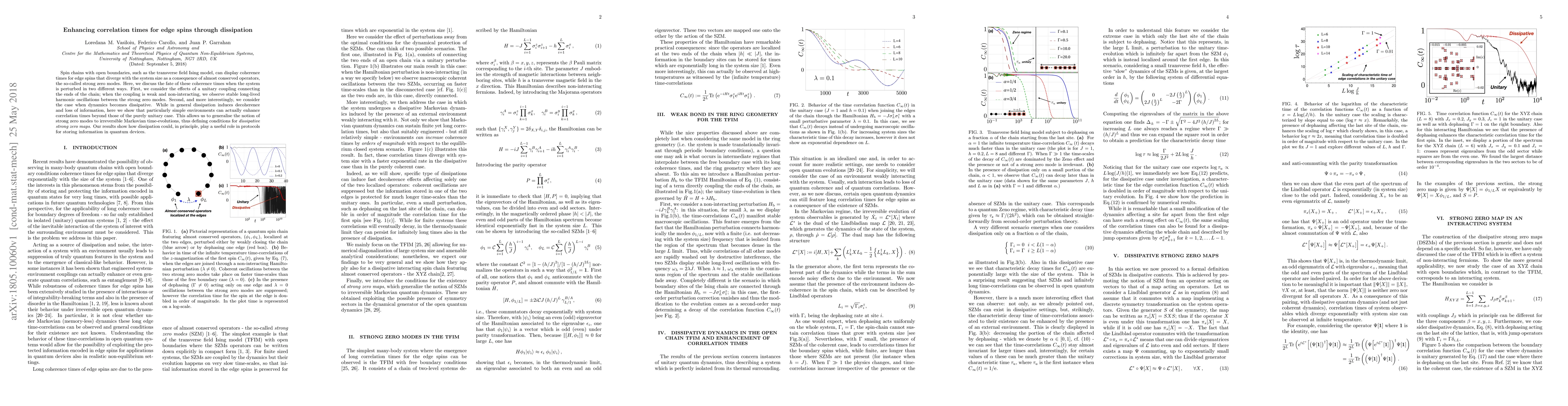 Spin chains with open boundaries, such as the transverse field Ising model, can display coherence times for edge spins that diverge with the system size as a consequence of almost conserved operators, the so-called strong zero modes. Here, we discuss the fate of these coherence times when the system is perturbed in two different ways. First, we consider the effects of a unitary coupling connecting the ends of the chain; when the coupling is weak and non-interacting, we observe stable long-lived harmonic oscillations between the strong zero modes. Second, and more interestingly, we consider the case when dynamics becomes dissipative. While in general dissipation induces decoherence and loss of information, here we show that particularly simple environments can actually enhance correlation times beyond those of the purely unitary case. This allows us to generalise the notion of strong zero modes to irreversible Markovian time-evolutions, thus defining conditions for {\em dissipative strong zero maps}. Our results show how dissipation could, in principle, play a useful role in protocols for storing information in quantum devices.