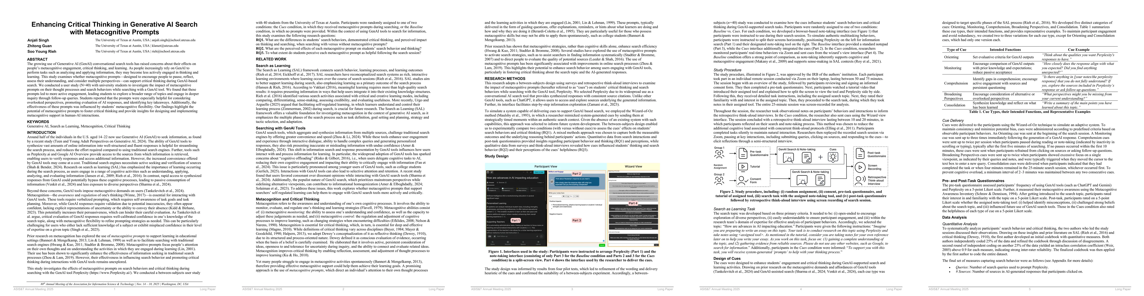 Metacognitive prompts can help people think critically while using Generative AI tools, leading to more active engagement and deeper inquiry. These prompts were found to promote evaluation of AI responses and consideration of multiple perspectives.