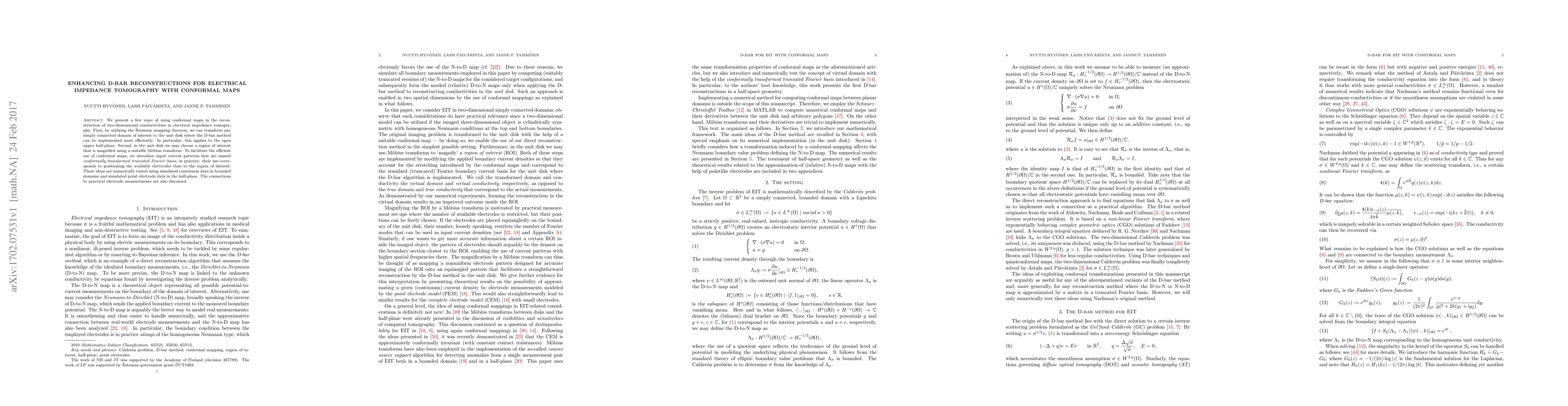 This paper explores the application of conformal maps to enhance D-bar reconstructions in electrical impedance tomography, transforming domains to the unit disk for efficient computation and magnifying regions of interest using Möbius transforms. It also introduces conformally transformed truncated Fourier basis input current patterns to optimize electrode placement.