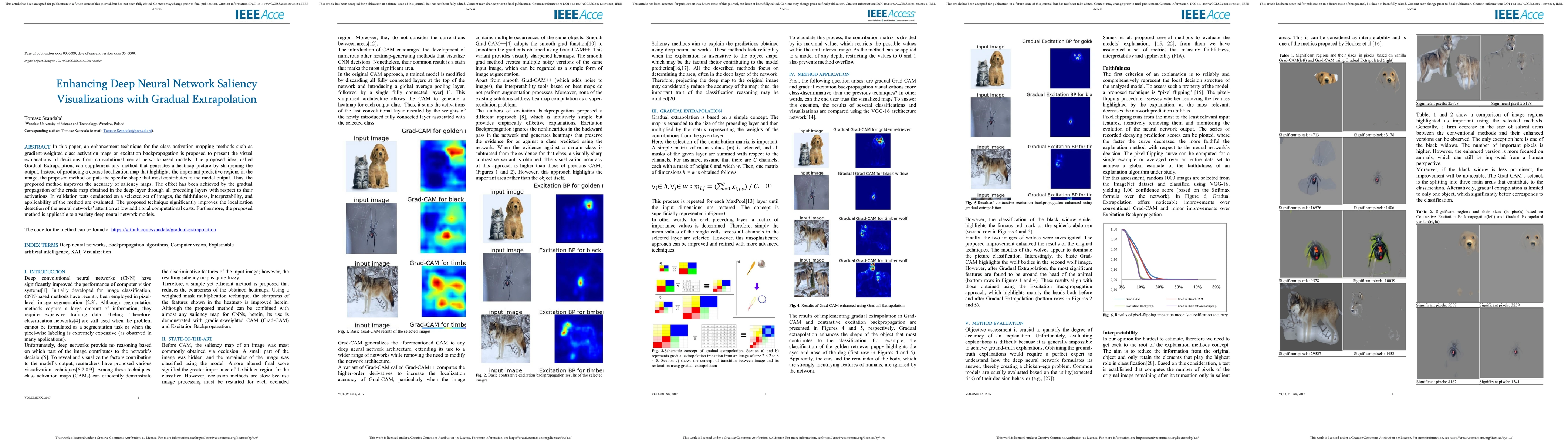 This paper proposes a technique called Gradual Extrapolation to enhance deep neural network saliency visualizations, improving the accuracy of localization detection at low additional computational costs.