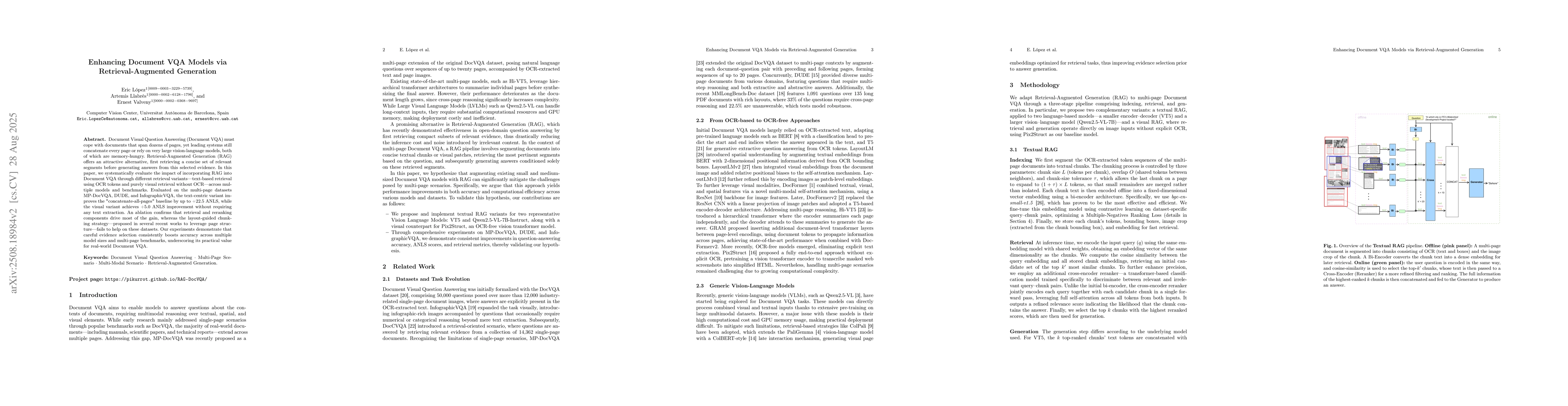 Document Visual Question Answering (Document VQA) must cope with documents that span dozens of pages, yet leading systems still concatenate every page or rely on very large vision-language models, both of which are memory-hungry. Retrieval-Augmented Generation (RAG) offers an attractive alternative, first retrieving a concise set of relevant segments before generating answers from this selected evidence. In this paper, we systematically evaluate the impact of incorporating RAG into Document VQA through different retrieval variants - text-based retrieval using OCR tokens and purely visual retrieval without OCR - across multiple models and benchmarks. Evaluated on the multi-page datasets MP-DocVQA, DUDE, and InfographicVQA, the text-centric variant improves the "concatenate-all-pages" baseline by up to +22.5 ANLS, while the visual variant achieves +5.0 ANLS improvement without requiring any text extraction. An ablation confirms that retrieval and reranking components drive most of the gain, whereas the layout-guided chunking strategy - proposed in several recent works to leverage page structure - fails to help on these datasets. Our experiments demonstrate that careful evidence selection consistently boosts accuracy across multiple model sizes and multi-page benchmarks, underscoring its practical value for real-world Document VQA.