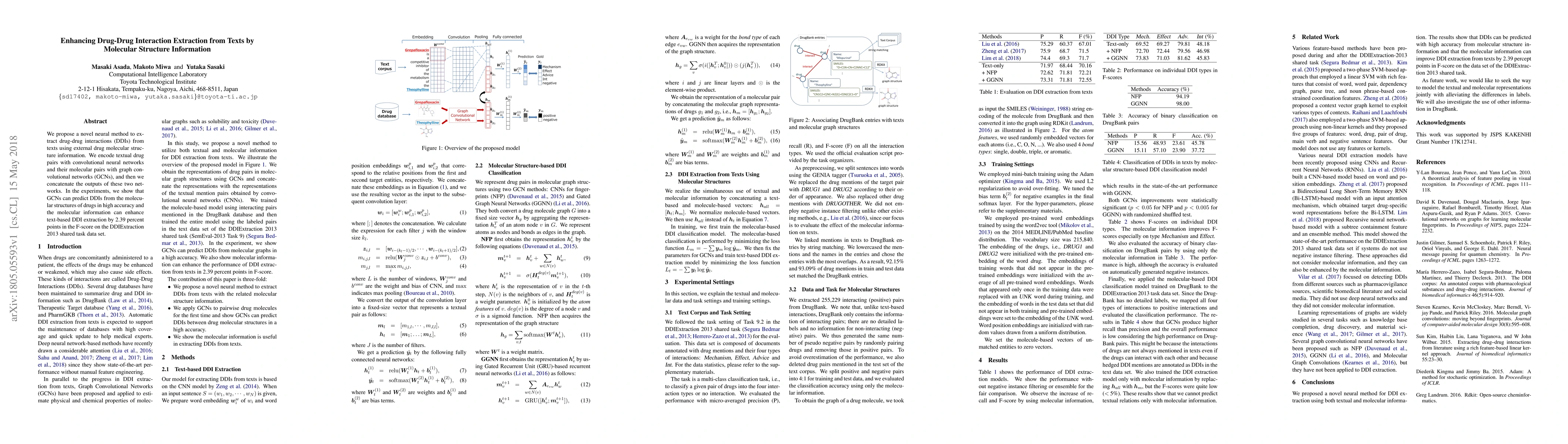 This paper introduces a neural method that combines textual and molecular structure data to enhance drug-drug interaction extraction from texts. It uses convolutional neural networks for textual data and graph convolutional networks for molecular structures, showing a 2.39 percent improvement in F-score on a shared task dataset.