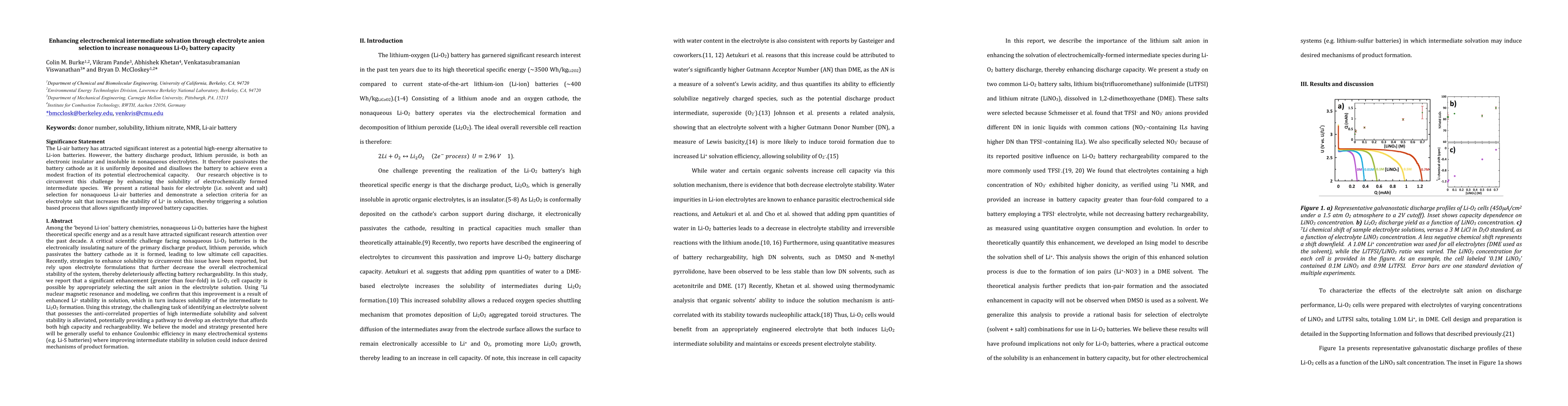 Among the 'beyond Li-ion' battery chemistries, nonaqueous Li-O$_2$ batteries have the highest theoretical specific energy and as a result have attracted significant research attention over the past decade. A critical scientific challenge facing nonaqueous Li-O$_2$ batteries is the electronically insulating nature of the primary discharge product, lithium peroxide, which passivates the battery cathode as it is formed, leading to low ultimate cell capacities. Recently, strategies to enhance solubility to circumvent this issue have been reported, but rely upon electrolyte formulations that further decrease the overall electrochemical stability of the system, thereby deleteriously affecting battery rechargeability. In this study, we report that a significant enhancement (greater than four-fold) in Li-O$_2$ cell capacity is possible by appropriately selecting the salt anion in the electrolyte solution. Using $^7$Li nuclear magnetic resonance and modeling, we confirm that this improvement is a result of enhanced Li$^+$ stability in solution, which in turn induces solubility of the intermediate to Li$_2$O$_2$ formation. Using this strategy, the challenging task of identifying an electrolyte solvent that possesses the anti-correlated properties of high intermediate solubility and solvent stability is alleviated, potentially providing a pathway to develop an electrolyte that affords both high capacity and rechargeability. We believe the model and strategy presented here will be generally useful to enhance Coulombic efficiency in many electrochemical systems (e.g. Li-S batteries) where improving intermediate stability in solution could induce desired mechanisms of product formation.