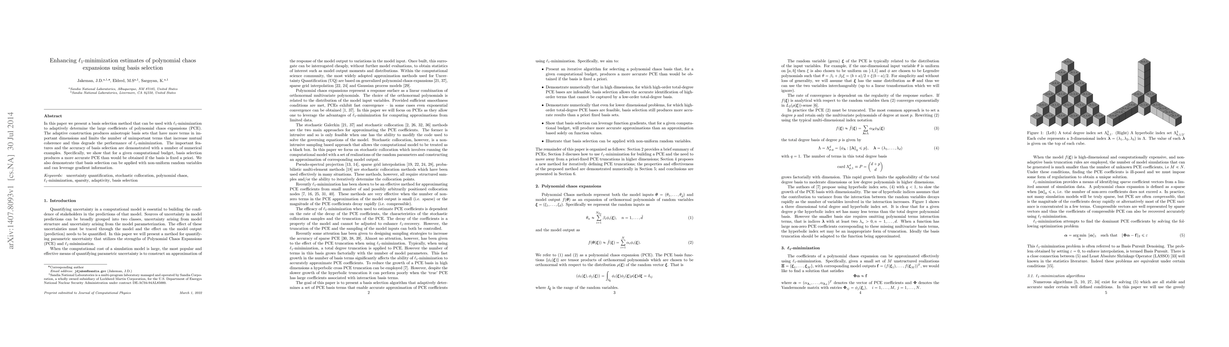 This paper introduces a basis selection method for $\ell_1$-minimization to adaptively determine significant coefficients in polynomial chaos expansions (PCE). The method constructs anisotropic basis sets with more terms in crucial dimensions, reducing the number of less important terms to enhance $\ell_1$-minimization performance, as demonstrated through numerical examples and various applications.