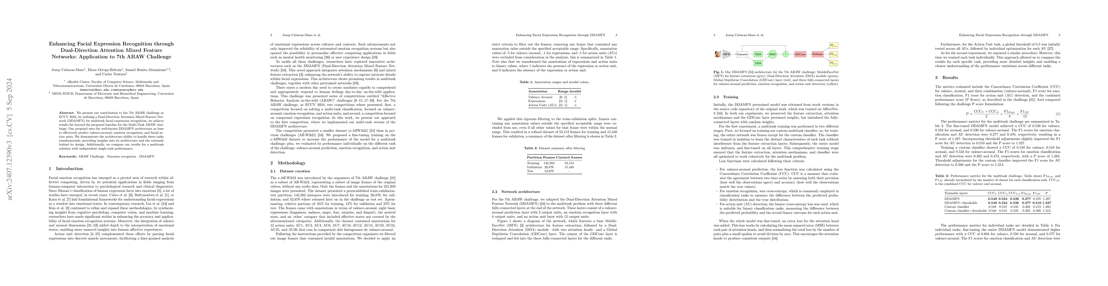 We present our contribution to the 7th ABAW challenge at ECCV 2024, by utilizing a Dual-Direction Attention Mixed Feature Network for multitask facial expression recognition we achieve results far beyond the proposed baseline for the Multi-Task ABAW challenge. Our proposal uses the well-known DDAMFN architecture as base to effectively predict valence-arousal, emotion recognition, and action units. We demonstrate the architecture ability to handle these tasks simultaneously, providing insights into its architecture and the rationale behind its design. Additionally, we compare our results for a multitask solution with independent single-task performance.