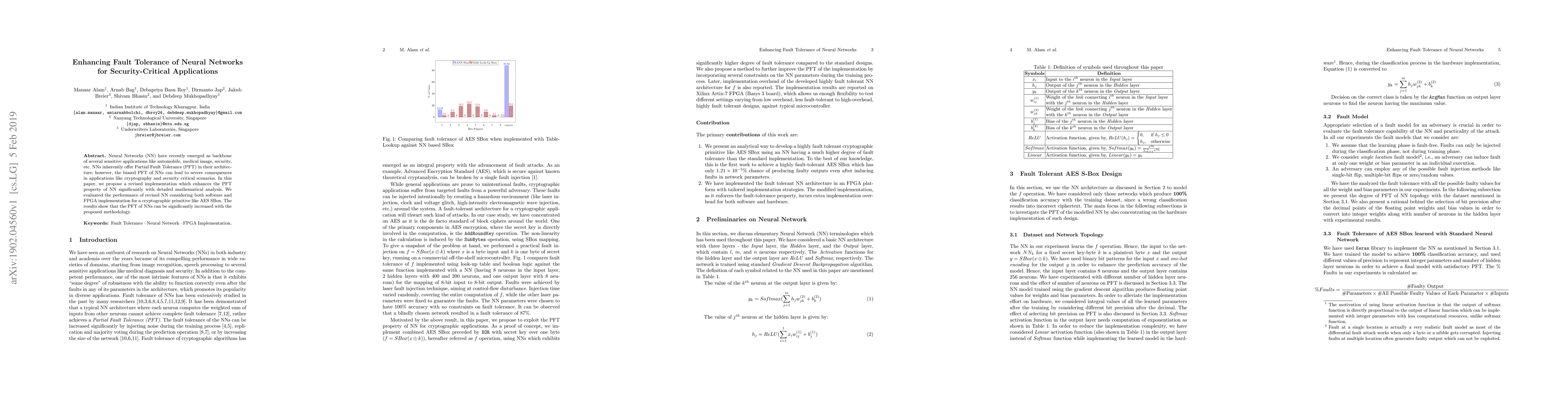 This paper proposes a revised implementation to enhance the partial fault tolerance (PFT) of neural networks (NN) for security-critical applications, providing a detailed mathematical analysis. The performance of the improved NN was evaluated in both software and FPGA implementations for a cryptographic primitive, showing significant increases in PFT.