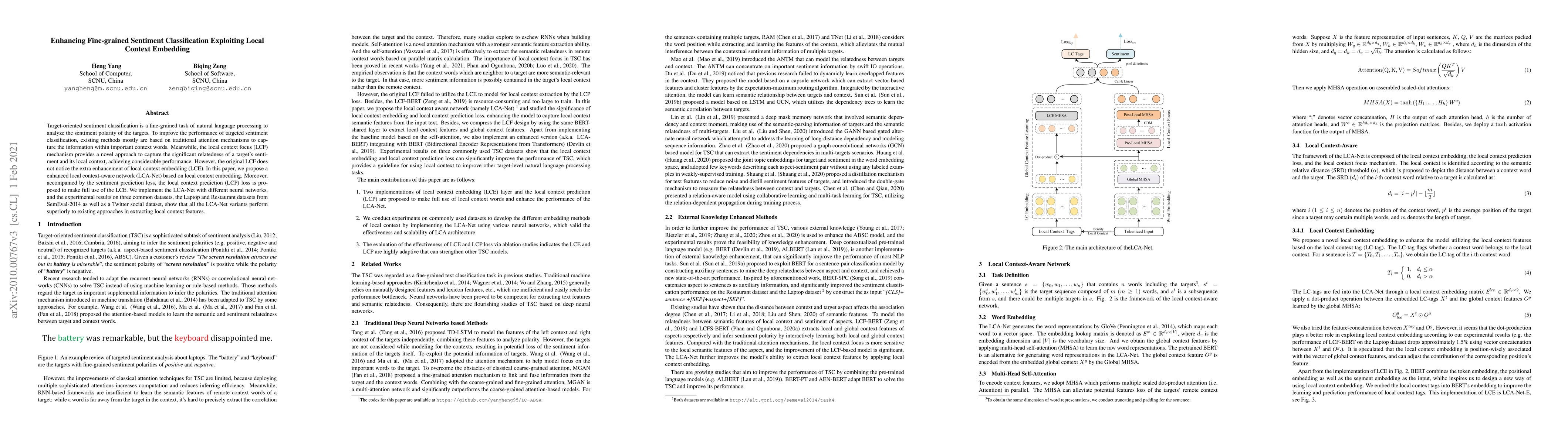 This paper introduces LCA-Net, a local context-aware network that leverages local context embedding and prediction loss to enhance fine-grained sentiment classification. Experimental results demonstrate superior performance over existing methods and adaptability to various target-level NLP tasks.