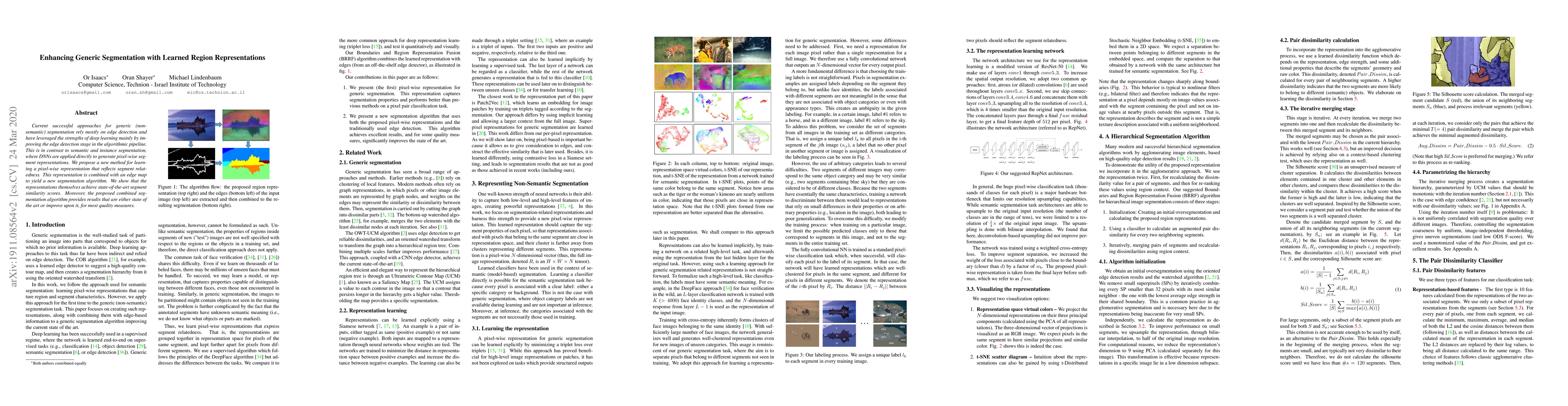 This paper proposes a new method to learn pixel-wise representations for generic segmentation, combining these with edge maps to enhance segmentation algorithms. The learned representations achieve top segment similarity scores and improve overall segmentation quality.