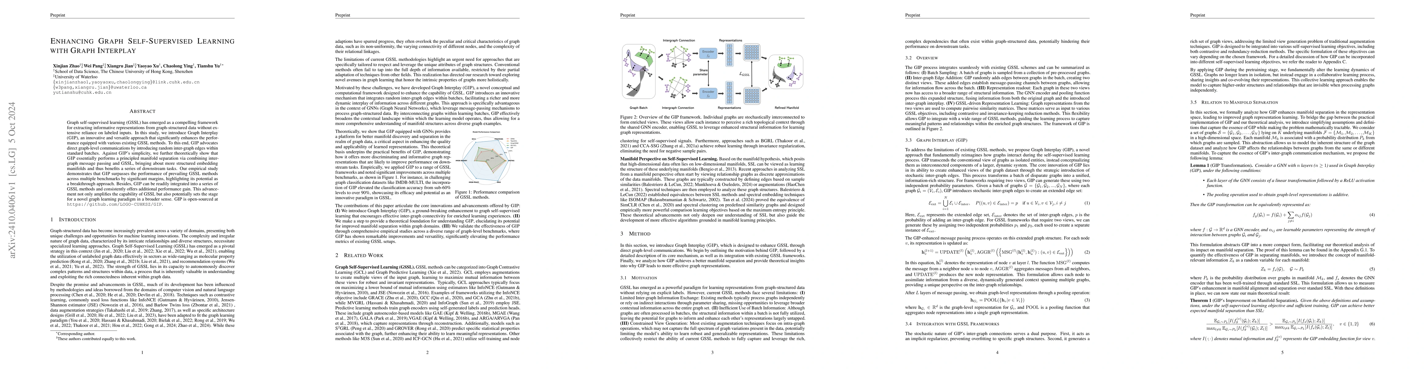 This paper introduces Graph Interplay (GIP), a simple yet effective method that enhances graph self-supervised learning (GSSL) by introducing random inter-graph edges for direct graph-level communications. The approach achieves superior performance across benchmarks and is theoretically shown to facilitate manifold separation, suggesting its potential to revolutionize graph learning paradigms.