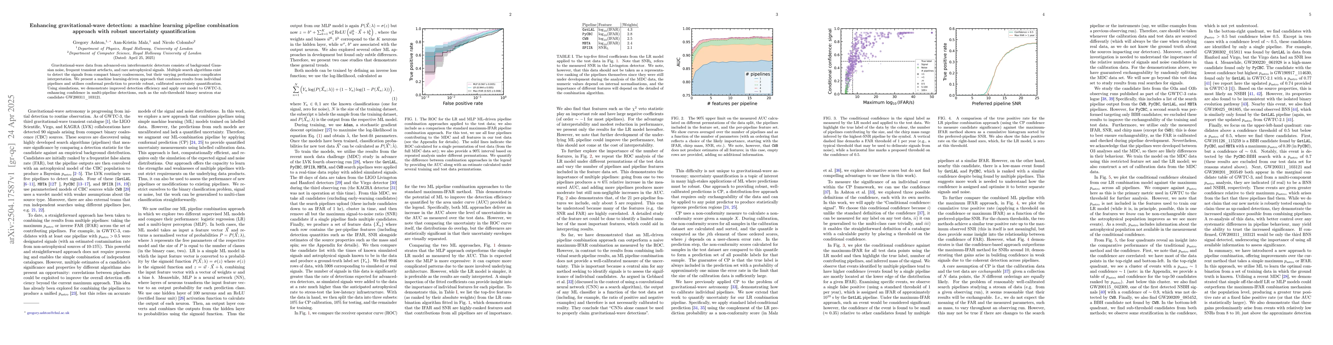The paper introduces a novel machine learning pipeline combination approach that utilizes conformal prediction for robust uncertainty quantification, enhancing detection efficiency and confidence in gravitational-wave signals.