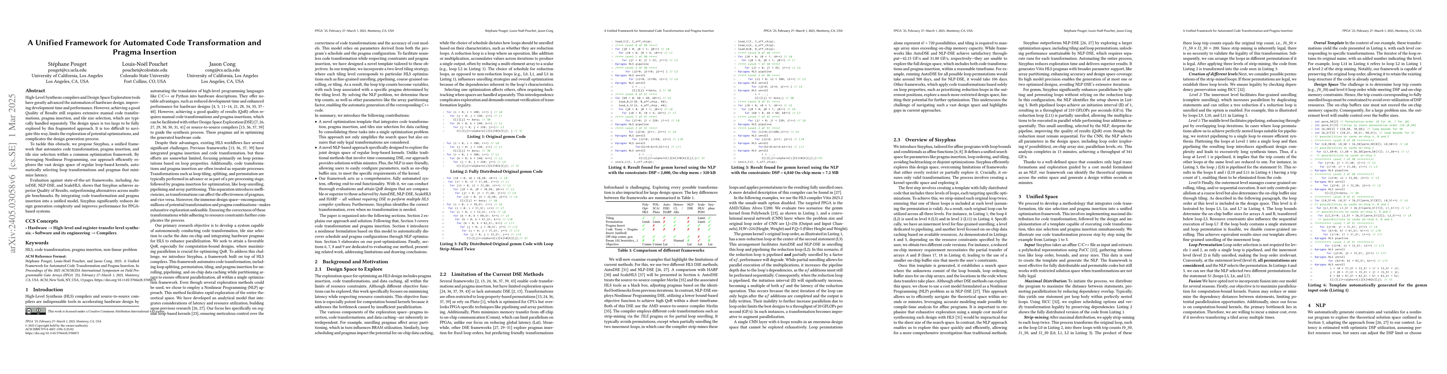 This paper proposes a framework to enhance high-level synthesis by automating pragma insertion and code transformation using a unified optimization problem. It employs a Non-Linear Programming approach to determine optimal transformations and pragmas, aiming to improve parallelization and performance of computation-bound kernels, while ensuring correctness.