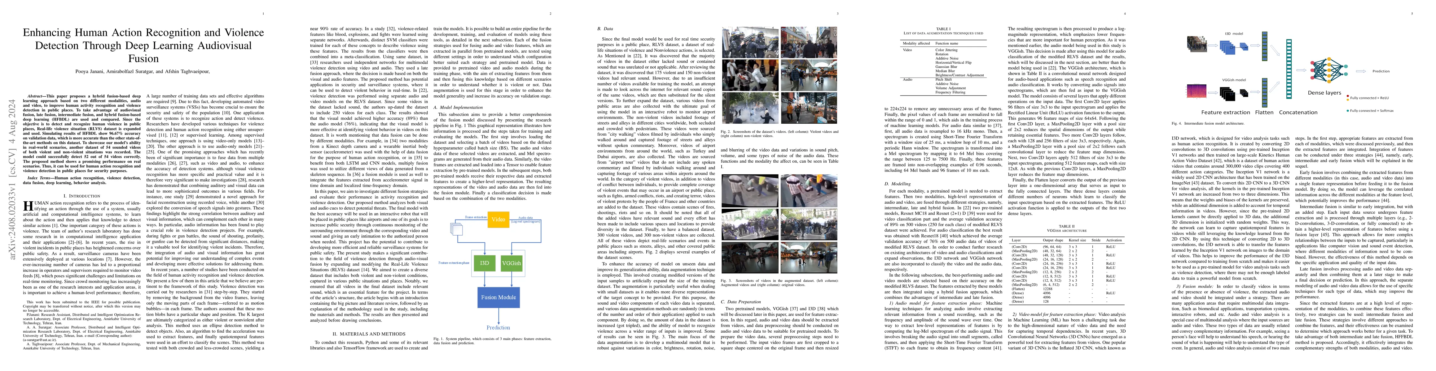 This paper introduces a hybrid fusion-based deep learning approach using audio and video modalities to enhance human action recognition and violence detection, achieving 96.67% accuracy. The method outperforms other state-of-the-art techniques and successfully identifies 52 out of 54 real-world videos.