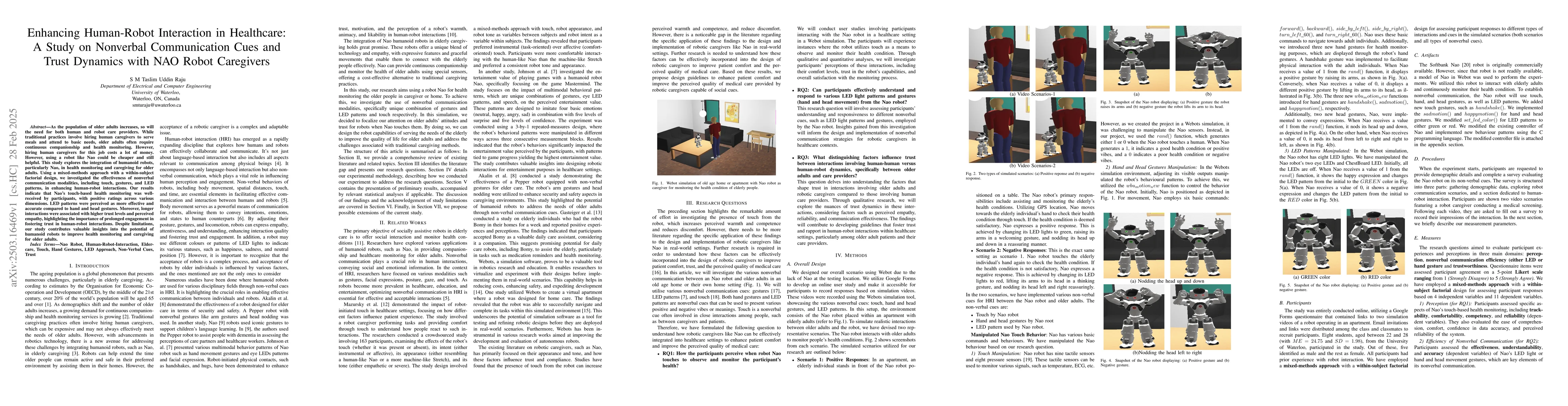 This research distinguishes itself by focusing on the impact of nonverbal communication cues on trust dynamics in human-robot interactions for healthcare, providing empirical evidence for Nao robot caregivers.
