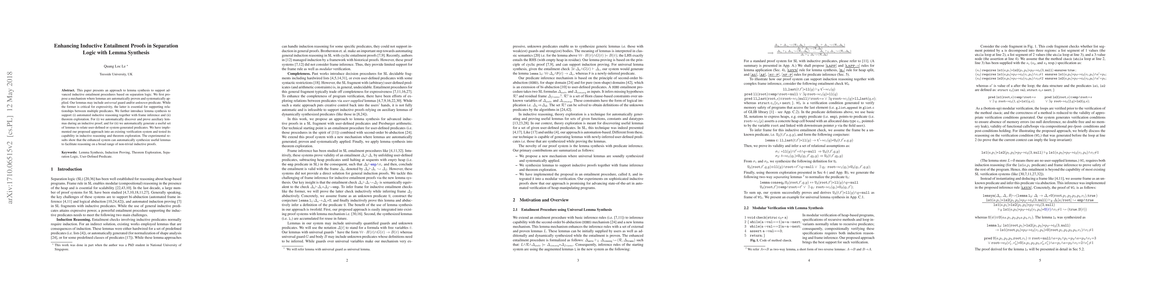 This paper proposes an automated lemma synthesis method to enhance inductive entailment proofs in separation logic, enabling both automated inductive reasoning and theorem exploration. Experimental results demonstrate the system's effectiveness in synthesizing useful lemmas for complex inductive proofs.
