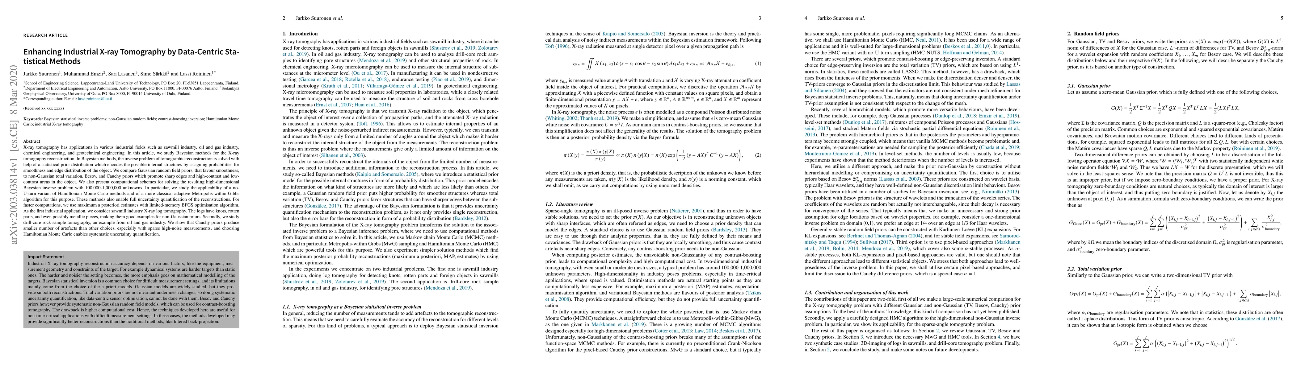 This paper explores Bayesian methods for enhancing industrial X-ray tomography reconstruction, comparing various statistical priors for different internal structures. It applies advanced computational techniques, including Hamiltonian Monte Carlo and adaptive Metropolis-within-Gibbs algorithms, to solve high-dimensional inverse problems and quantify uncertainties, demonstrating effectiveness in sawmill log and oil-gas drill-core tomography.
